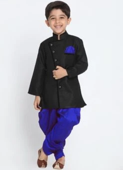 Black Art Silk Solid Stitched Indowestern Sherwani Party Wear