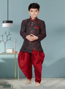 Black Jacquard Silk Printed Work Indowestern Sherwani Party Wear