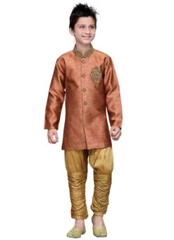 Cream And Orange Art Silk Jacquard Indowestern Sherwani Party Wear