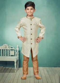 Cream N Gold Banarasi Silk Jacquard Classic Sherwani Party Wear