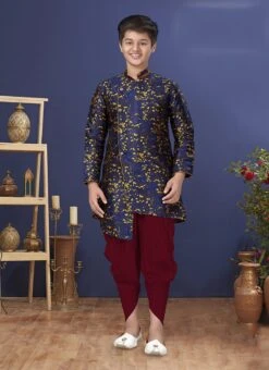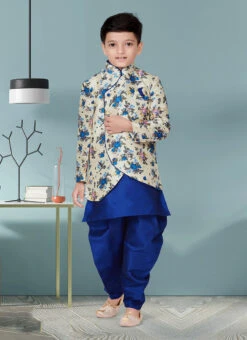 Blue Jacquard Silk Printed Work Indowestern Sherwani Party Wear