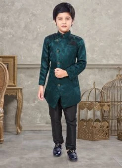Dark Green Art Silk Jacquard Indowestern Sherwani Party Wear