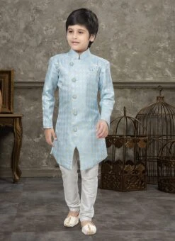 Firozi And Sky Blue Art Silk Jacquard Indowestern Sherwani Party Wear