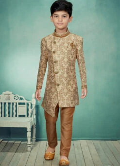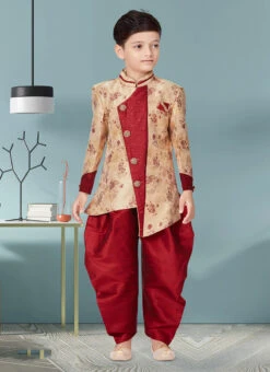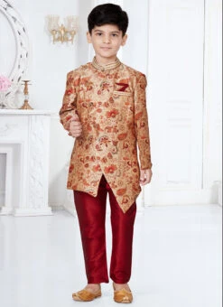 Gold N Maroon Jacquard Silk Printed Indowestern Sherwani Party Wear