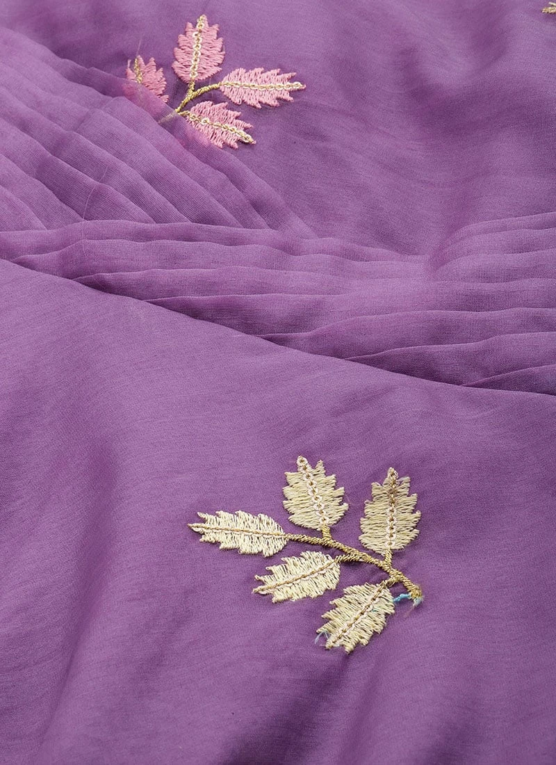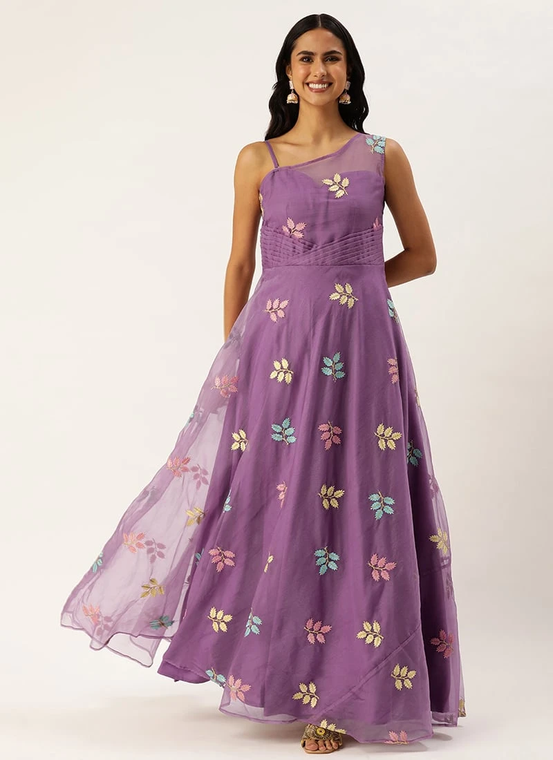 Lavender Embroidered Organza One Shoulder Gown Party Wear