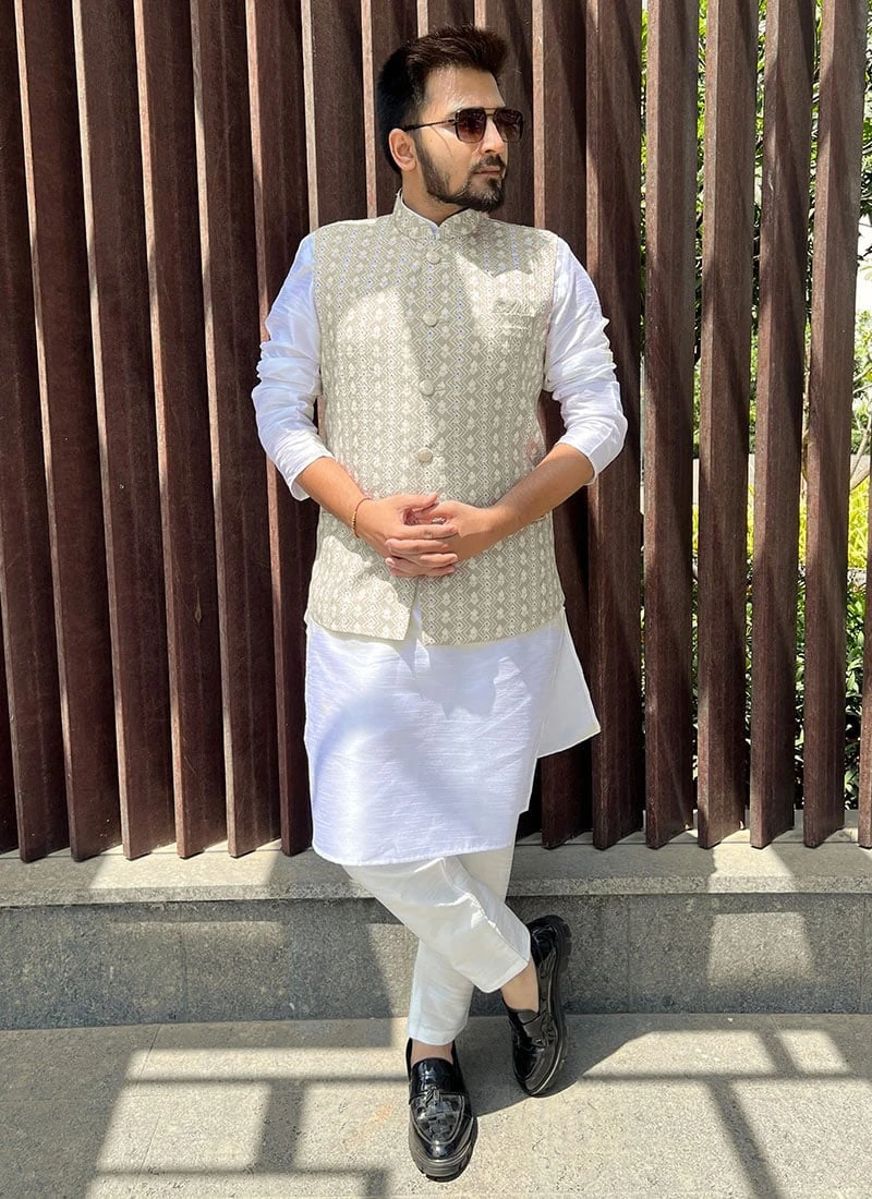 Grab the fashion with light brown cotton nehru jacket crafted with mandarin collar neck and sleeveless enriched with printed work is representing royalty in itself.