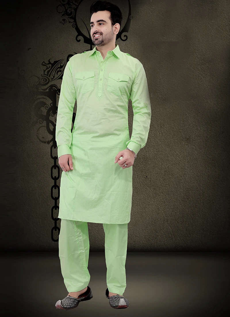 Looking amazing with attachment of light green cotton pathani set. This pretty attire is displaying some fantastic pattern work. This paithani set comes with light green cotton salwar pant bottom.