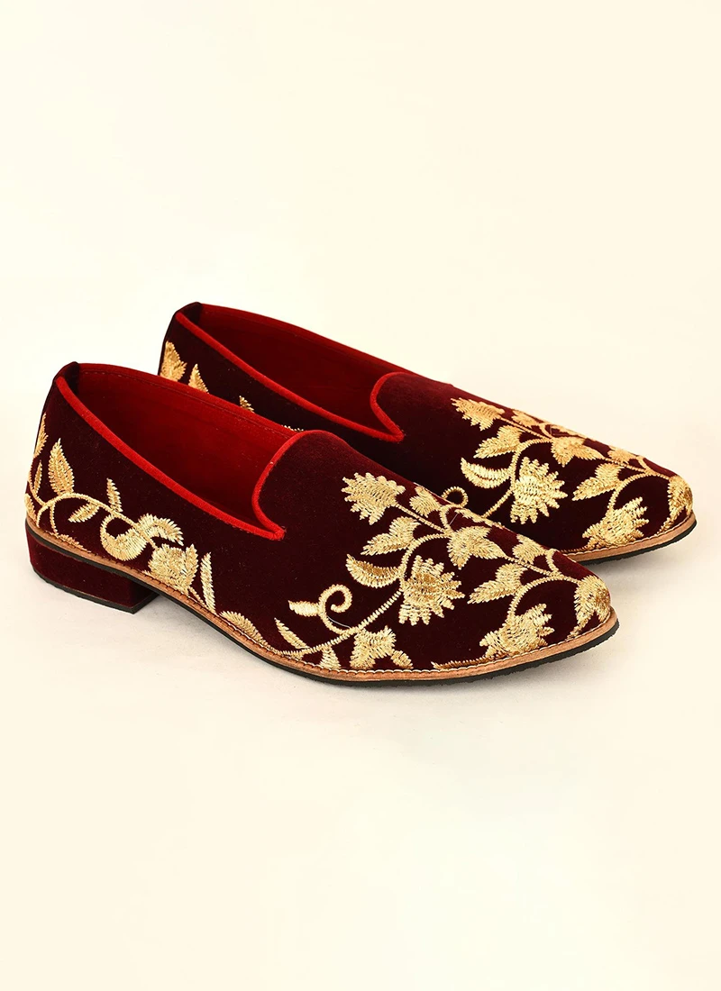In conclusion the Maroon Faux Leather Embroidered Mojri is a true work of art that seamlessly blends tradition with contemporary style. With its exquisite embroidery comfortable design and versatile appeal these mojris are a musthave for anyone who appreciates fine craftsmanship and fashion. Wearing these mojris not only enhances your overall look but also reflects your appreciation for heritage and creativity. Step into the world of elegance and charm with these stunning mojris that are sure to turn heads wherever you go.
