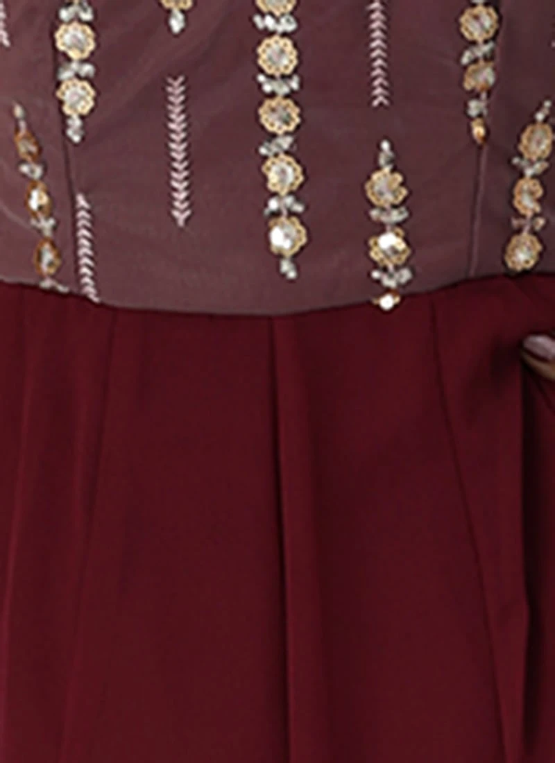 Mauve Net Sequins N Burgundy Godet Dress Festive Wear Wedding Wear