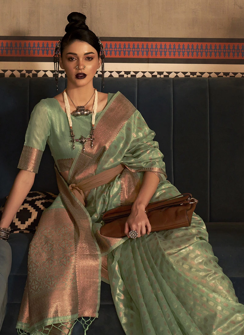 Mint Green Silk Jacquard Woven Saree Festive Wear
