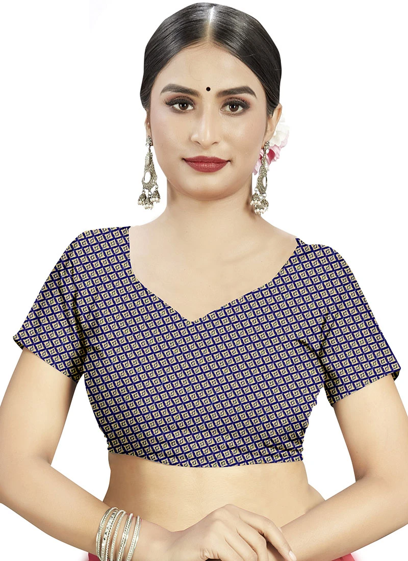 Comes with unstitched blouse fabric. To have the blouse stitched, please select the custom tailoring options. Blouses with elaborate patterns and colors are used for photo-shoot. Color and pattern of the blouse might not be as shown in the image.