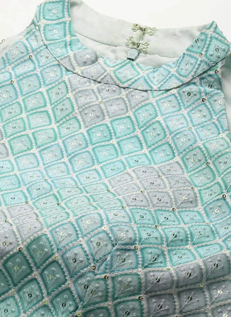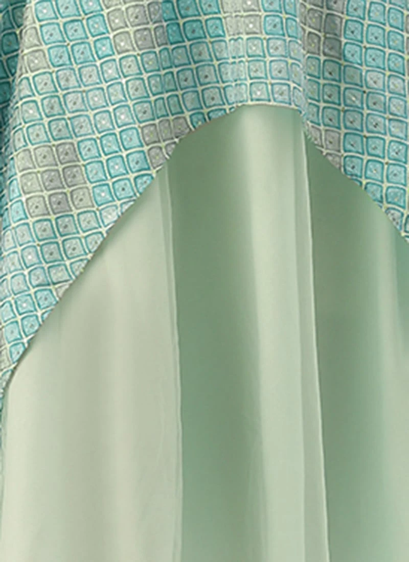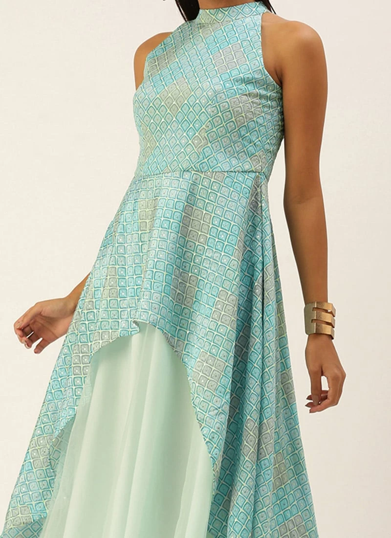 Multicolor N Green Asymmetrical Gown Party Wear