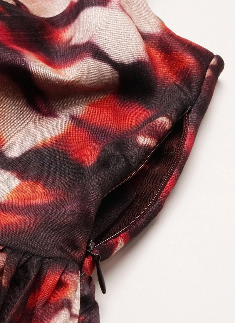 Multicolored Digital Printed Gathered Dress After Six Wear