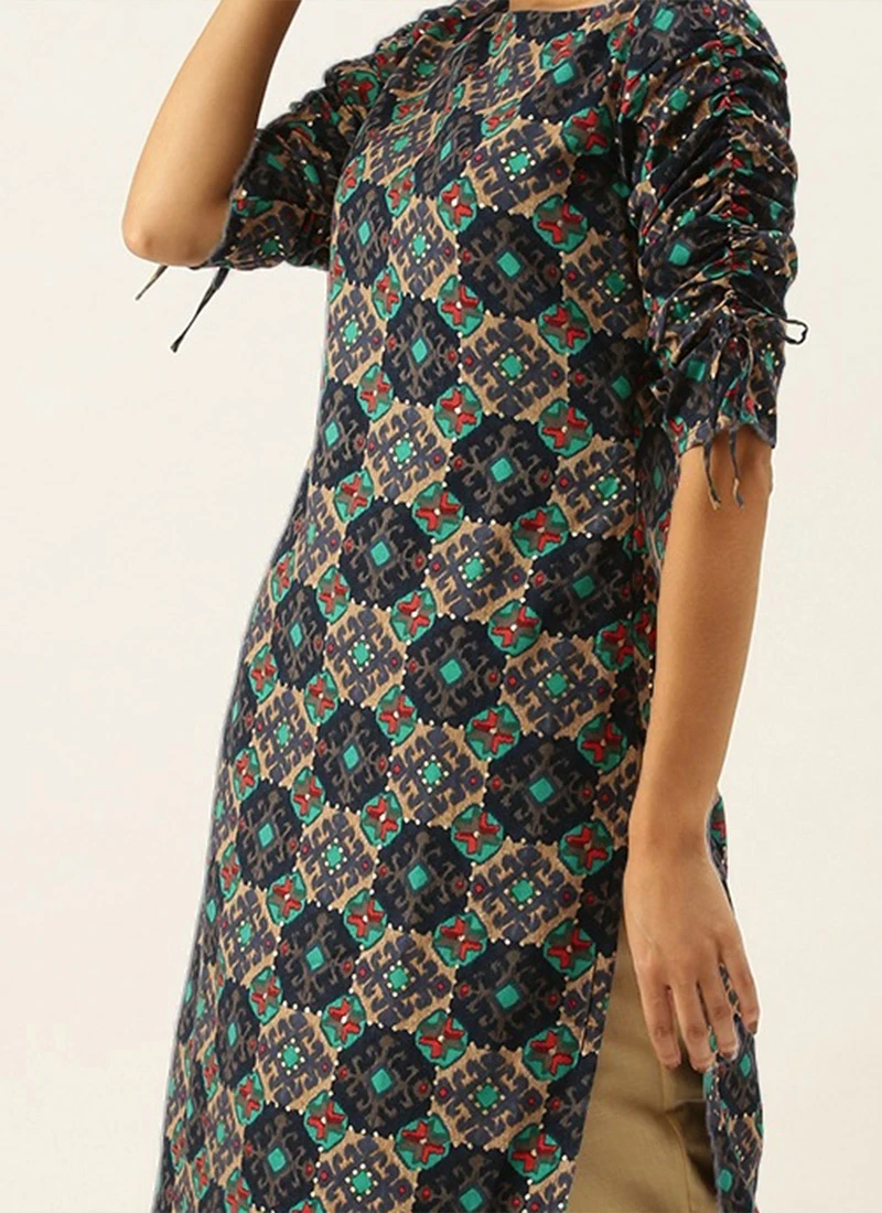 Multicolored Printed Straight Pant Kurta Set Festive Wear