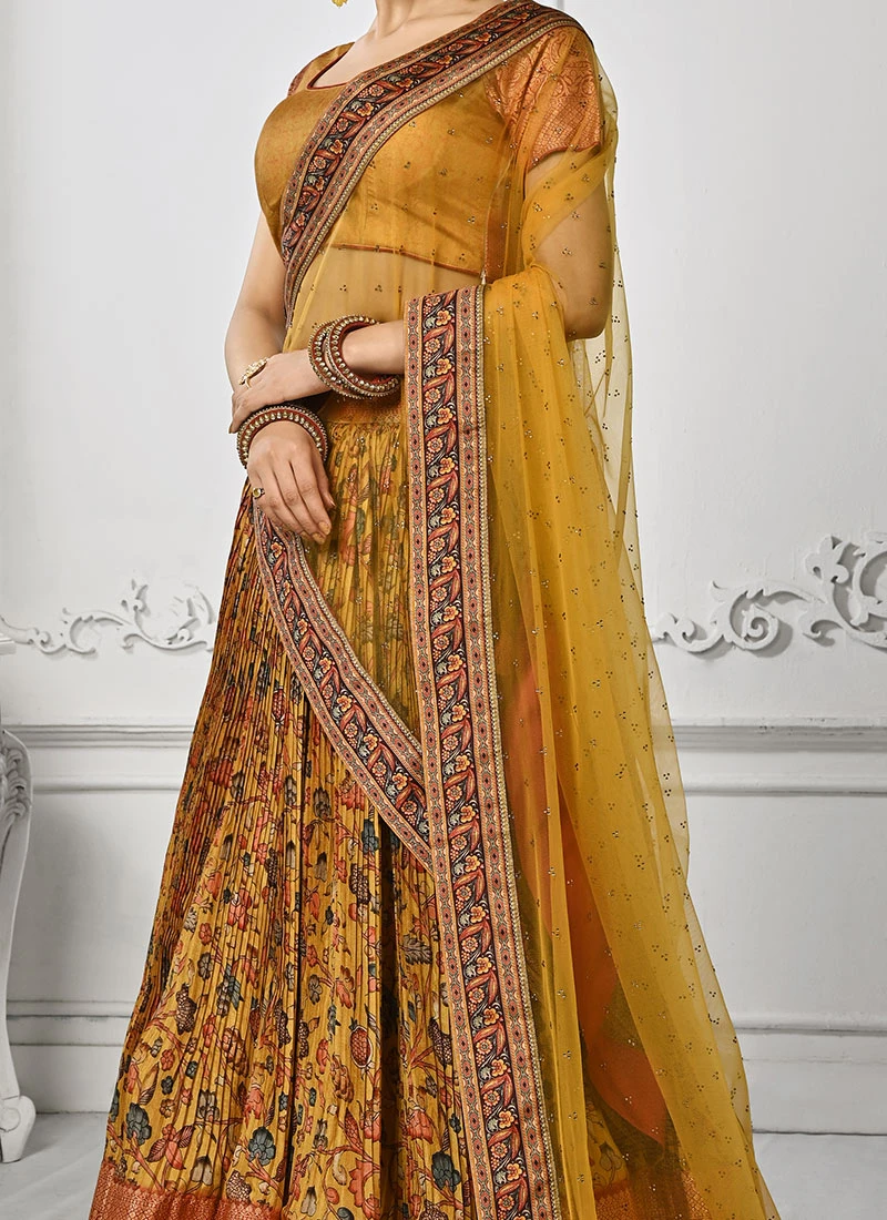 Mustard Art Silk Digital Print A Line Lehenga Festive Wear