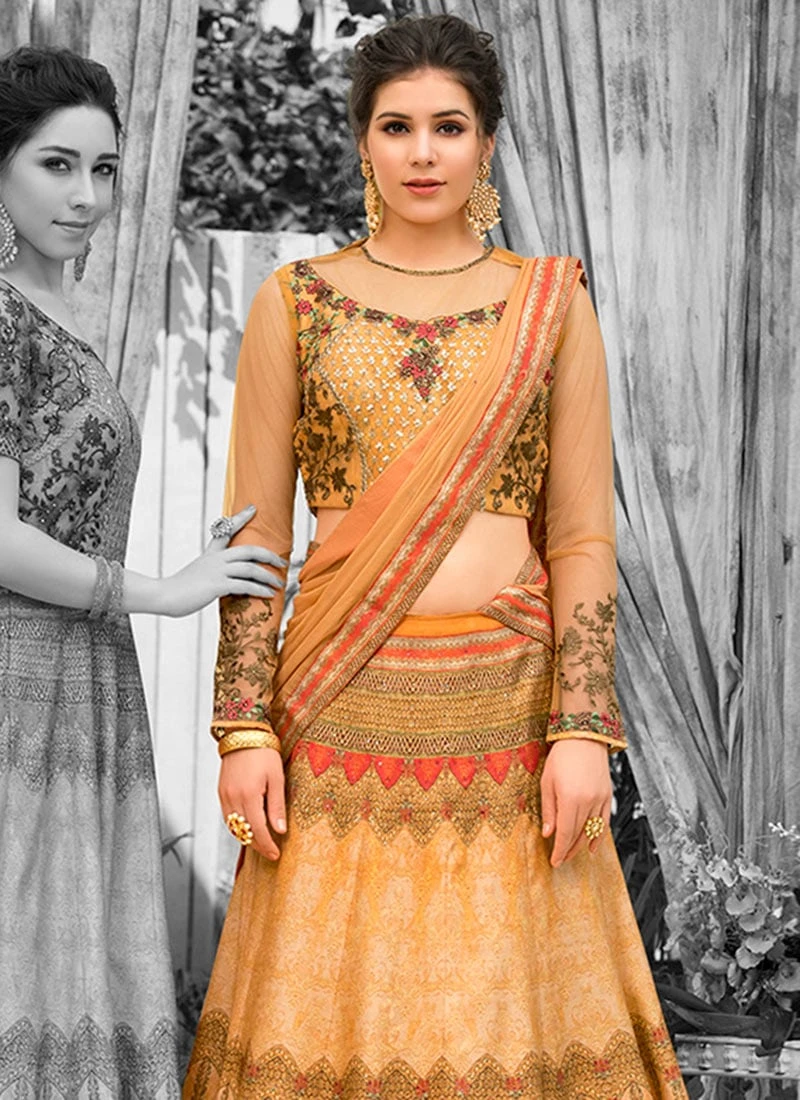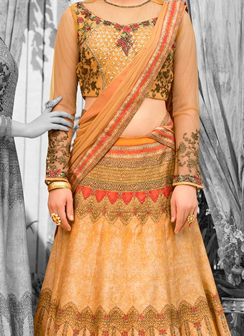 Mustard Digital Printed Umbrella Lehenga Wedding Wear