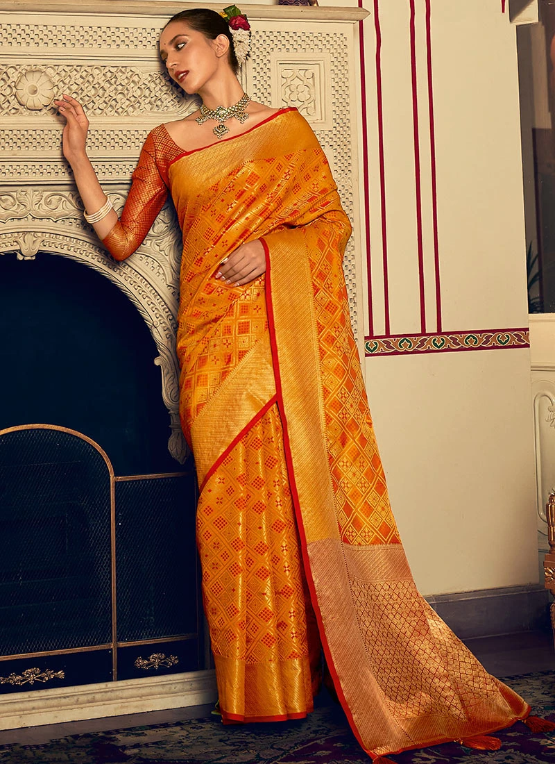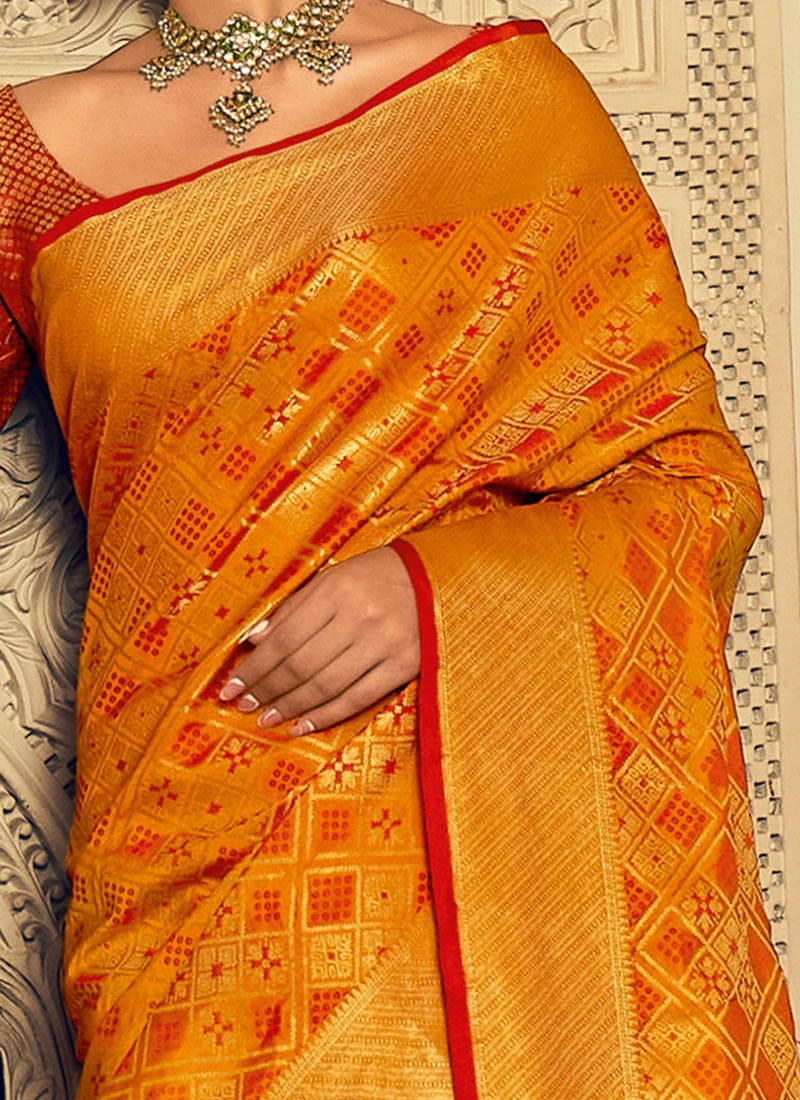 Mustard Patola Silk Zari Weaving Saree Festive Wear