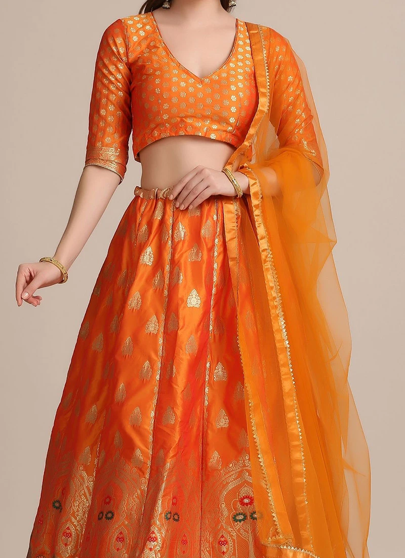 Mustard Silk Jacquard Weaving Work A Line Lehenga Party Wear