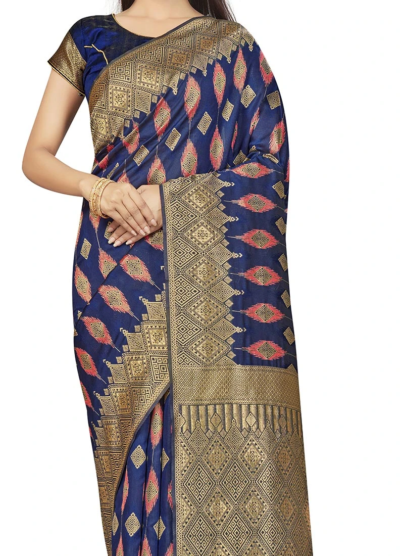 Navy Blue Banarasi Silk Zari Work Saree Festive Wear