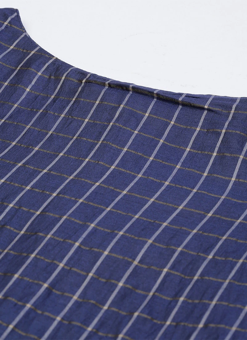 Navy Blue N Beige A Line Kurta Palazzo Set Festive Wear