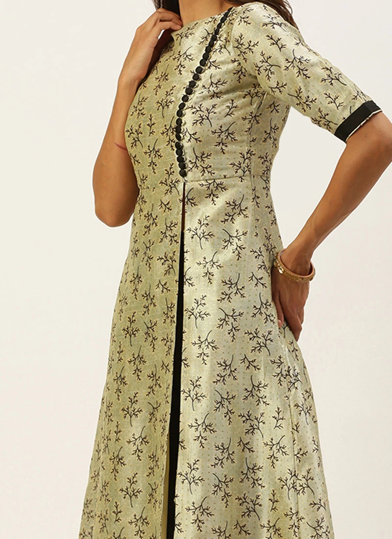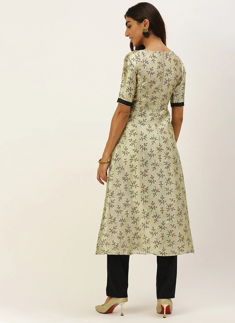Off White Art Silk Printed Kurta Set Festive Wear
