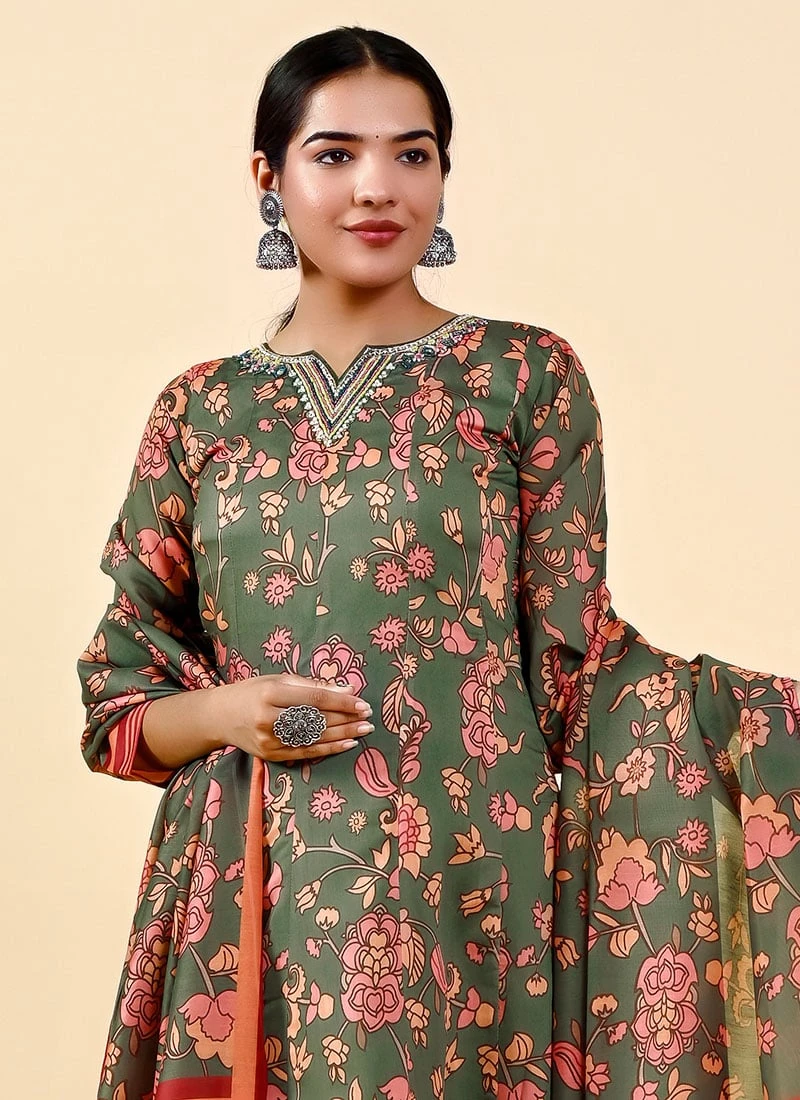 Orange Art Silk Printed Gown After Six Wear