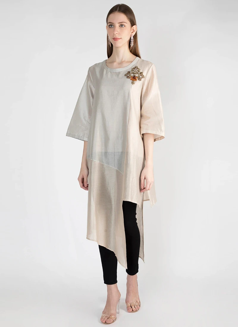Peach Silk Kurta Straight Pant Set Work Wear