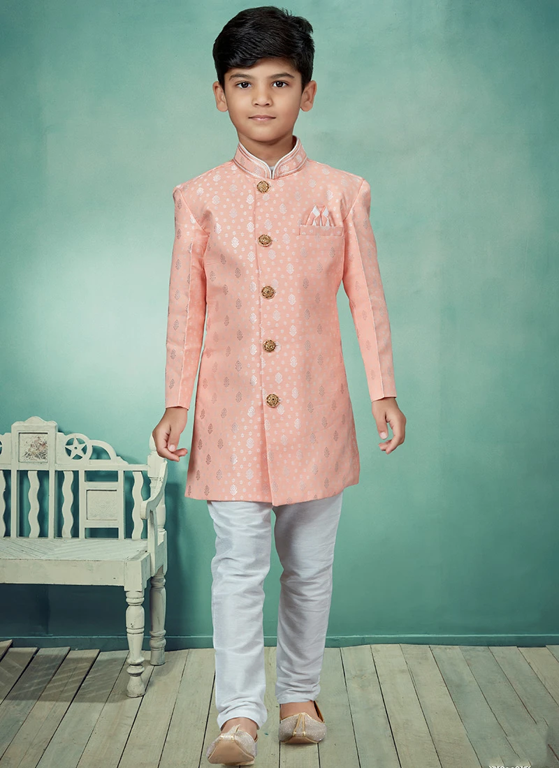 Be the first to review “Pink Banarasi Silk Jacquard Indowestern Sherwani Party Wear” Cancel reply