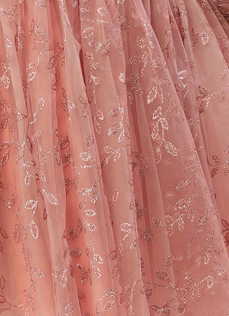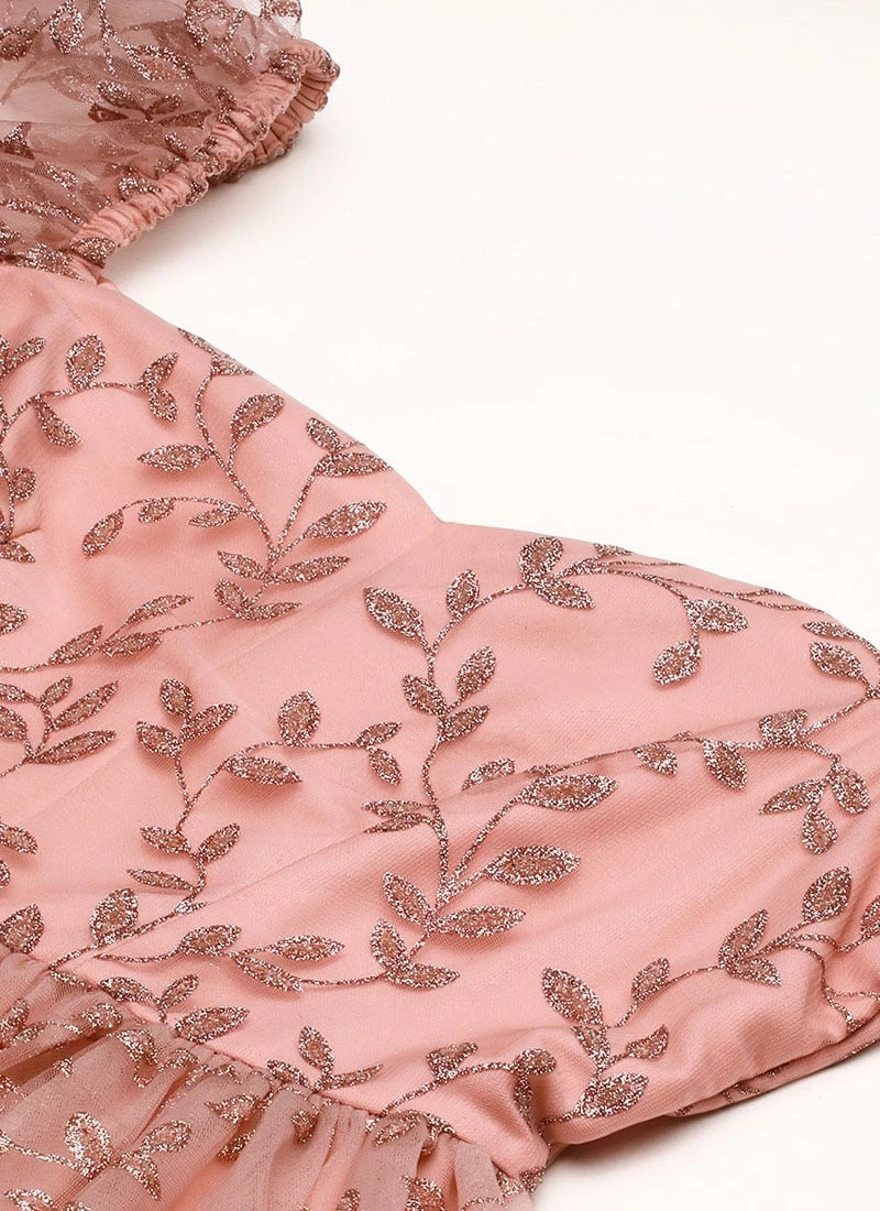 Pink Foil Printed Net Dress Party Wear