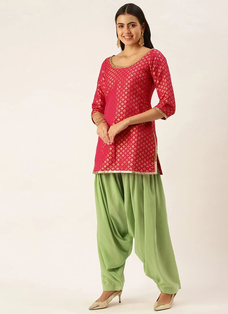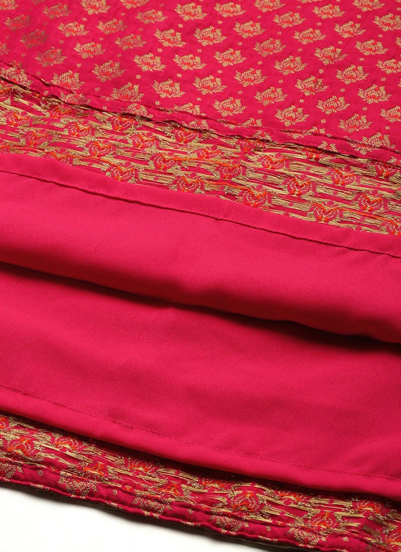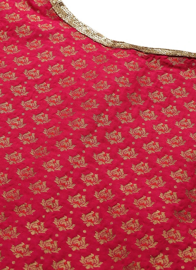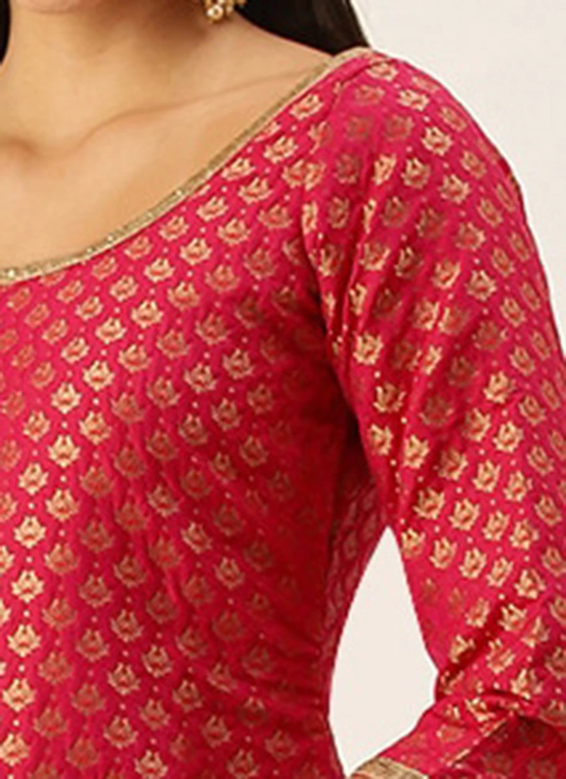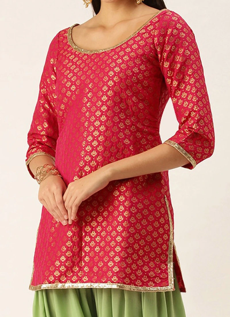 Pink Jacquard Round Neck Kurti Festive Wear