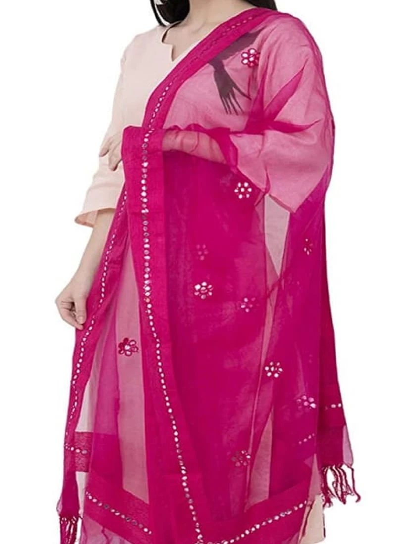 Pink Organza Cotton Gota Patti Work Dupatta Festive Wear
