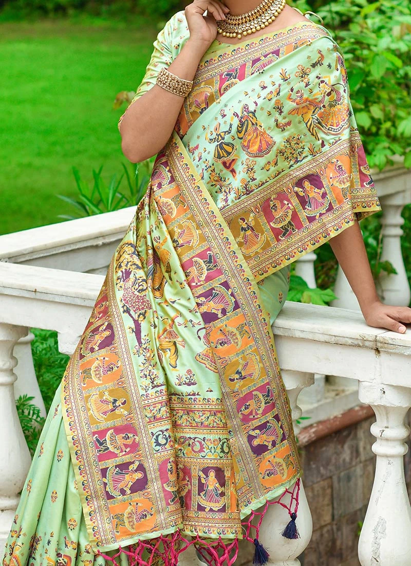 In summary the Pista Art Benarasi Silk Zari Saree is a celebration of colour craftsmanship and culture. Its exquisite zari work intricate designs and enchanting colour make it a symbol of timeless beauty and elegance capturing the essence of traditional Indian attire. Owning and wearing this saree is not just a fashion statement it is a nod to the rich heritage of Indian textile artistry making every moment adorned in it truly special and unforgettable.