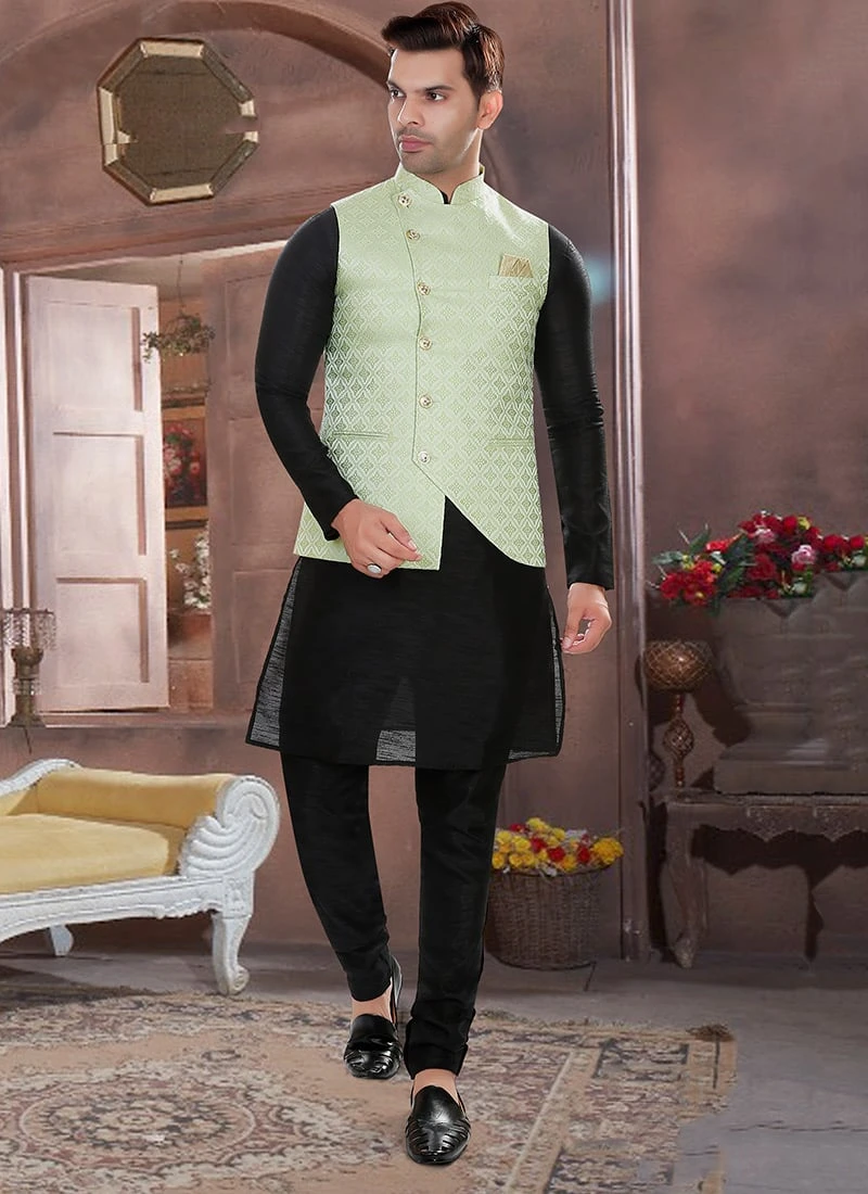 Whether youre attending a wedding a cultural event or any special occasion the Pista Green Art Silk Brocade Bandhgala Jacket is a fashion masterpiece that will undoubtedly turn heads and leave a lasting impression. Embrace the richness of Indian heritage and contemporary fashion with this exceptional garment and make a statement wherever you go.