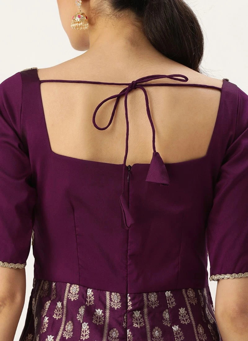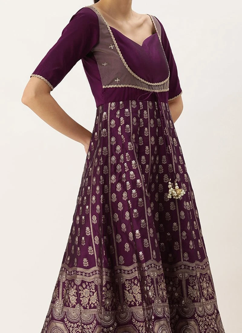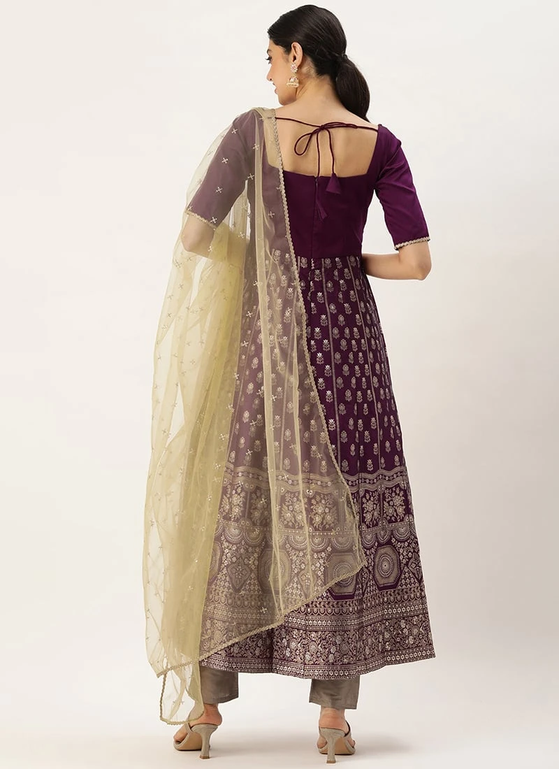 Purple Art Silk Jacquard Anarkali Set Festive Wear