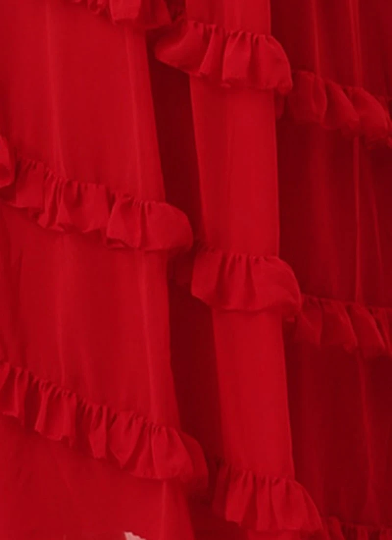Red Georgette Embroidered Maxi Dress Festive Wear
