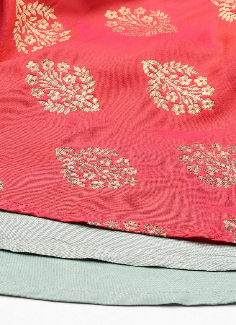 Red Jacquard N Sea Green Anarkali Suit Festive Wear