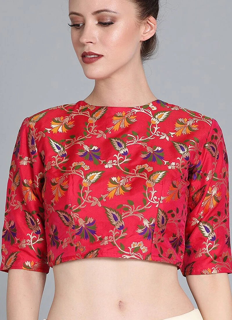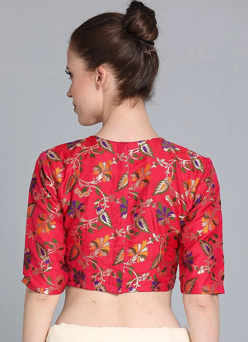 Red N Pink Jacquard Blouse Festive Wear