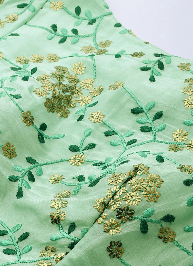 Sea Green Embroidered Asymmetrical Layered Gown Party Wear