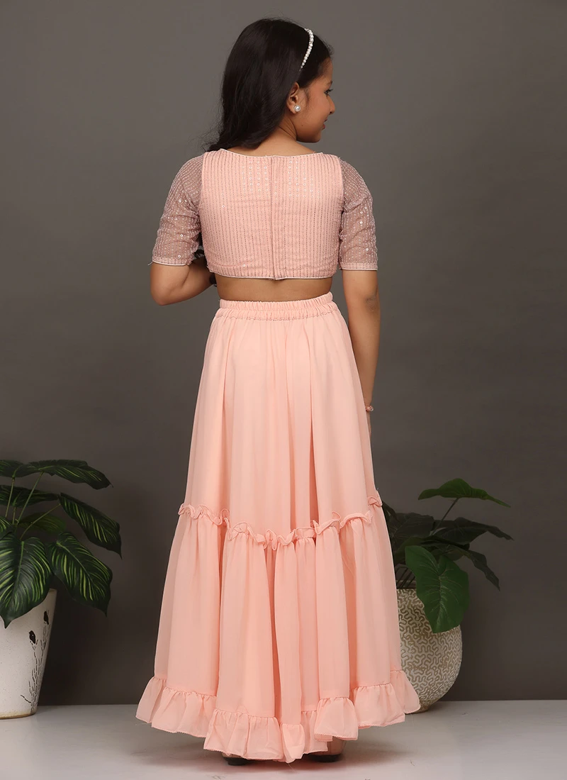 Skirt From Kids Girls Pink N Peach Embroidered Crop Top N Skirt After Six Wear