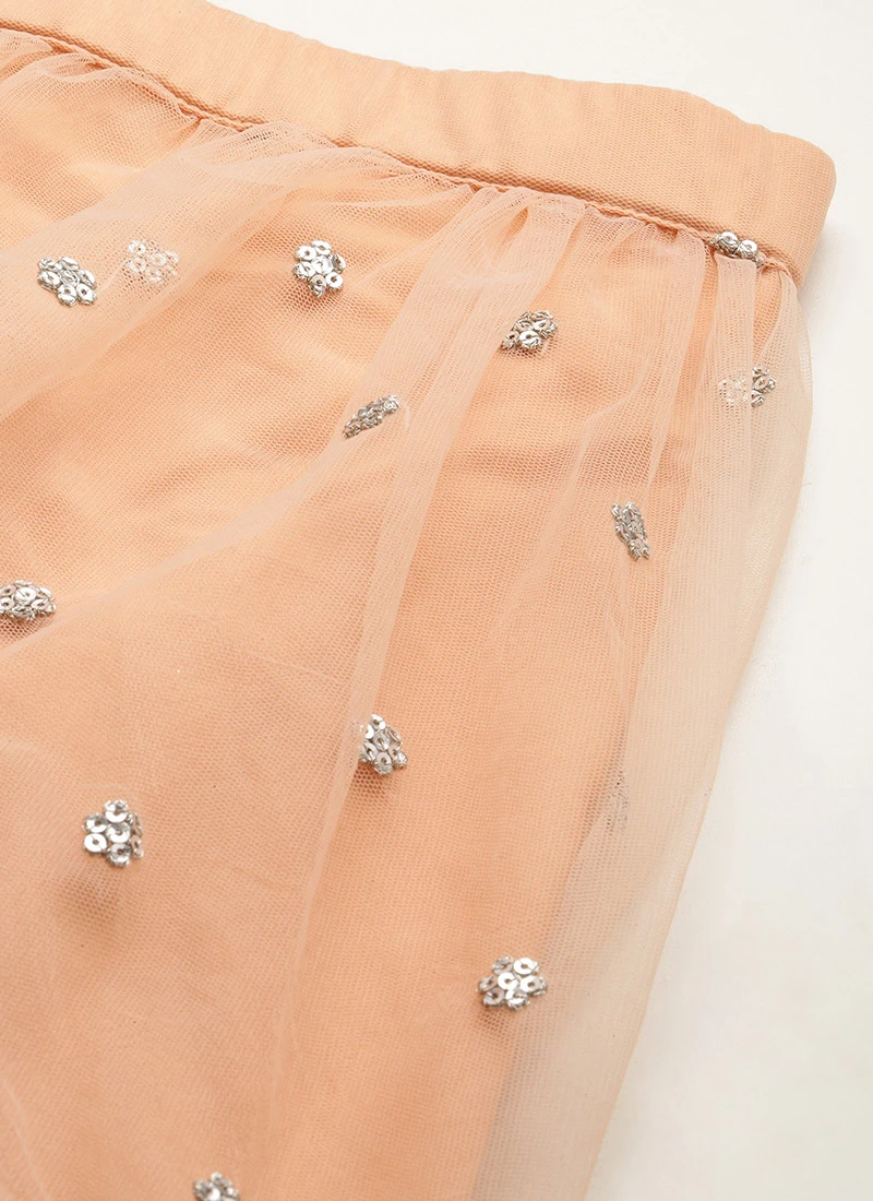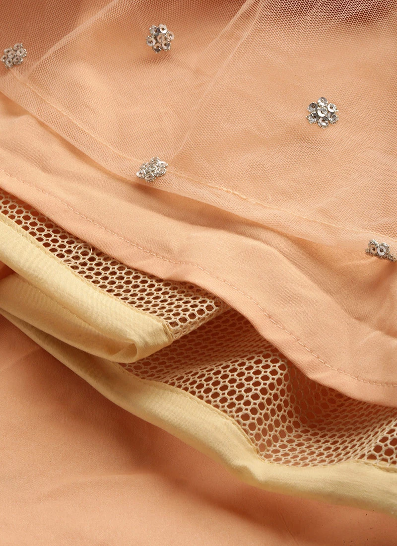 Skirt From Multicoloured N Peach Net Embroidered Lehenga After Six Wear