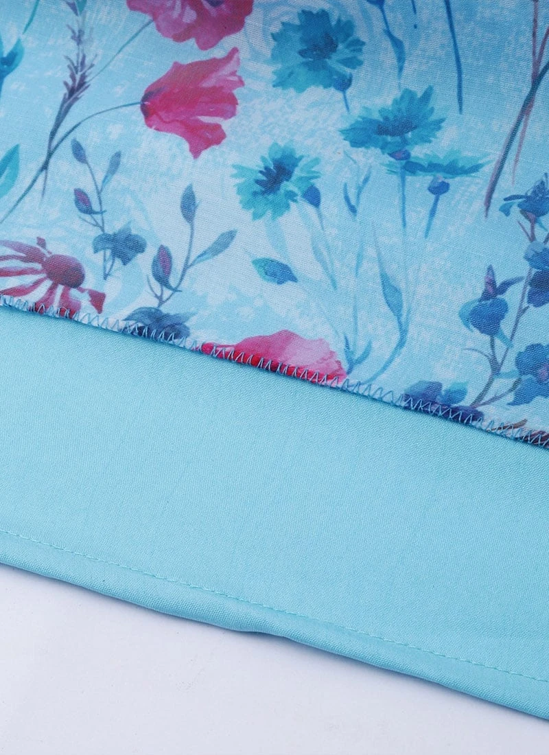 Sky Blue Printed Organza Asymmetrical Dress After Six Wear
