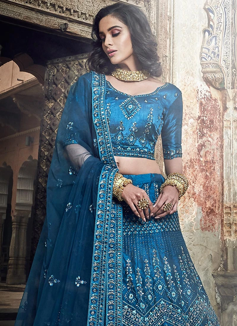 Teal Blue Art Silk A Line Lehenga Wedding Wear