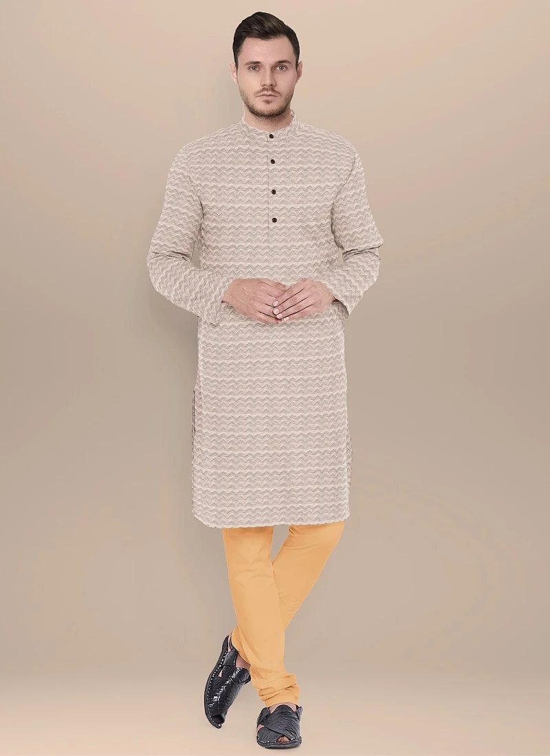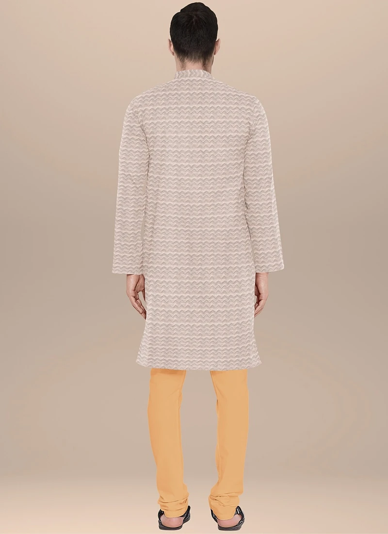 Teen Boys Cream Art Silk N Beige Kurta Pyjama Set Festive Wear