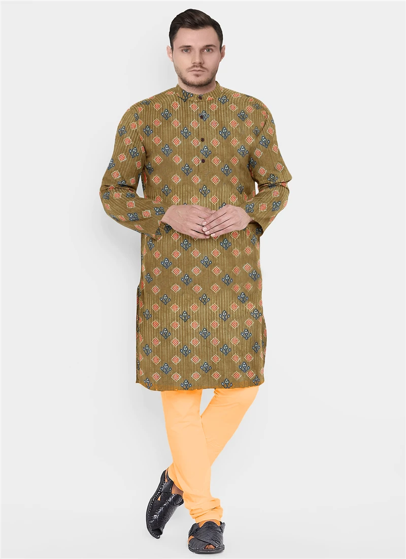 Teen Boys Green Printed Art Silk Kurta Set Festive Wear