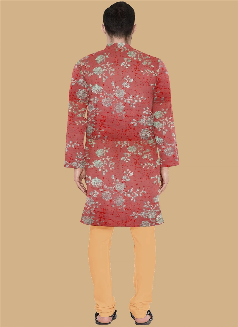 Teen Boys Pink Art Silk Kurta Set Party Wear