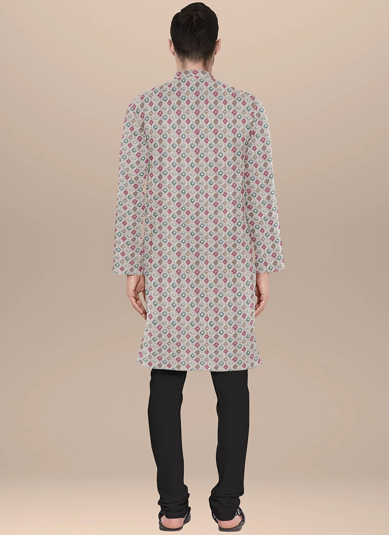 Teen Boys White Art Silk N Black Kurta Pyjama Set Festive Wear