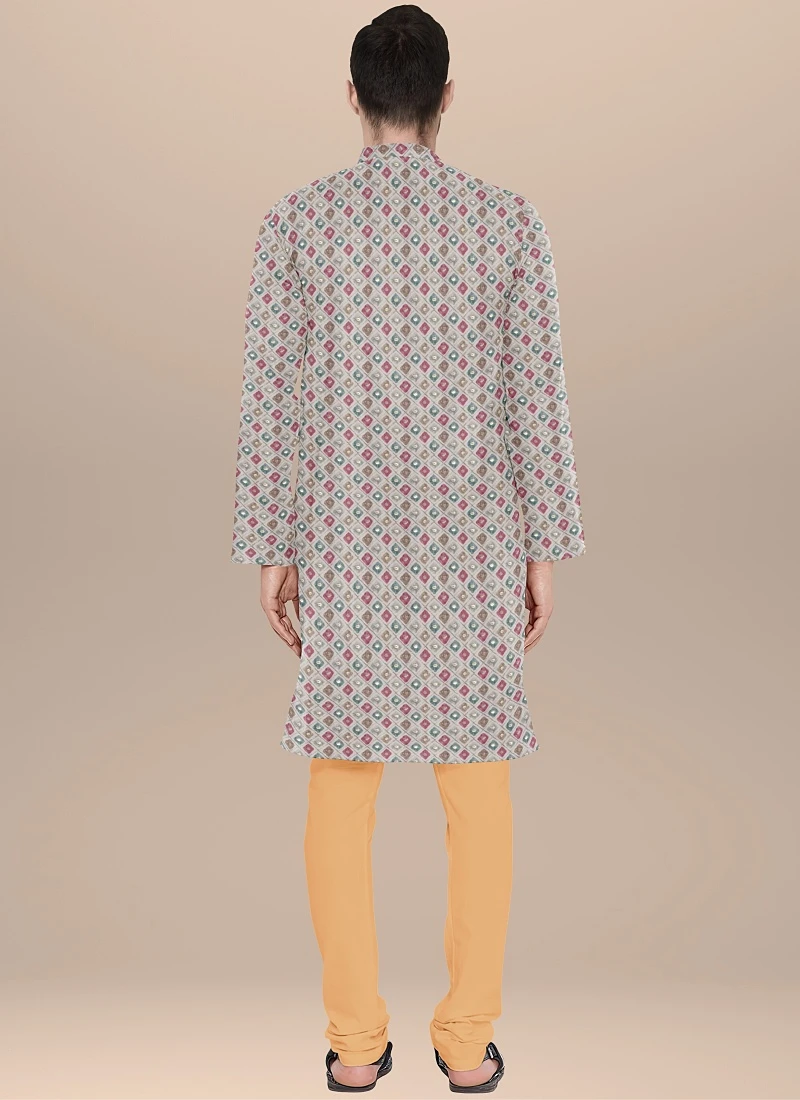 Teen Boys White Chinon Embroidery N Beige Kurta Pyjama Set Festive Wear