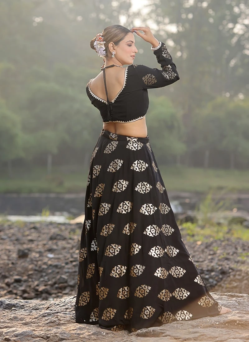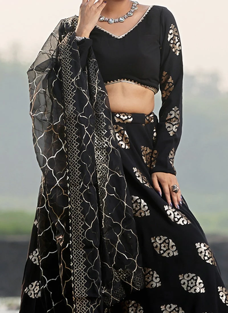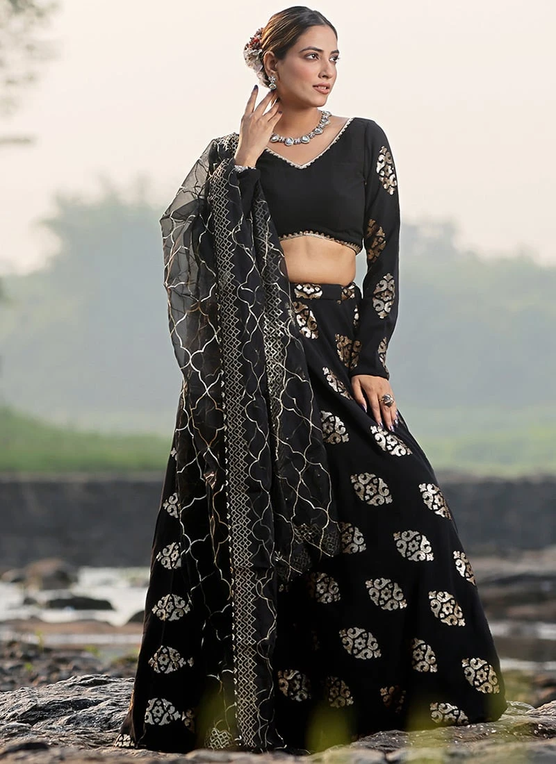 Teen Girls Black Embroidered Lehenga With Organza Dupatta Wedding Wear