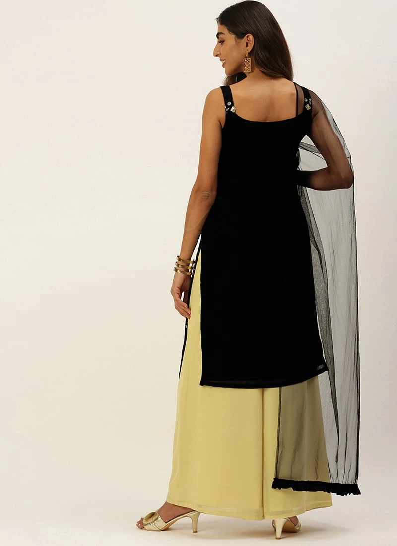Teen Girls Black Embroidered N Beige Palazzo Set Festive Wear