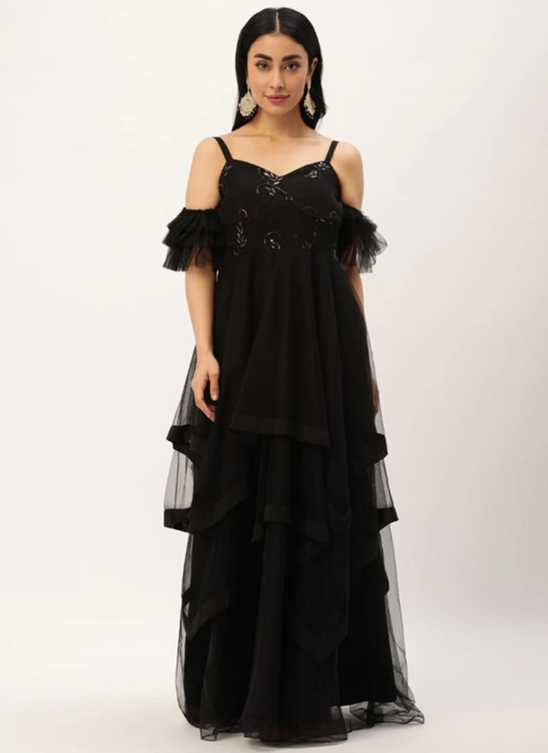 Teen Girls Black Embroidered Organza N Net Gown Party Wear